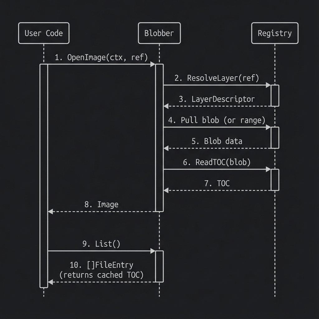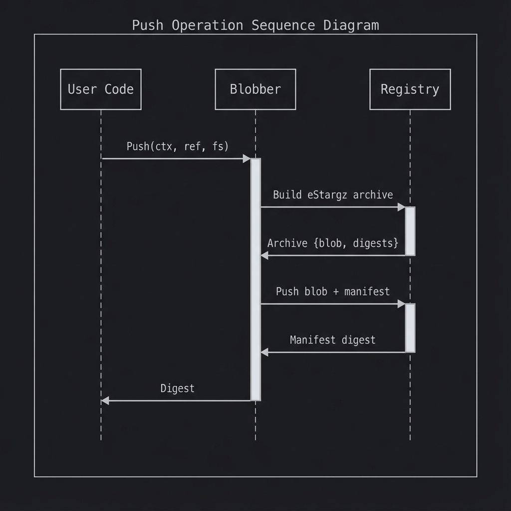 Blobber follows the UNIX philosophy: do one thing well. The core responsibility is moving files to and from OCI registries efficiently. Everything else—authentication, caching, compression—is delegated to focused components.